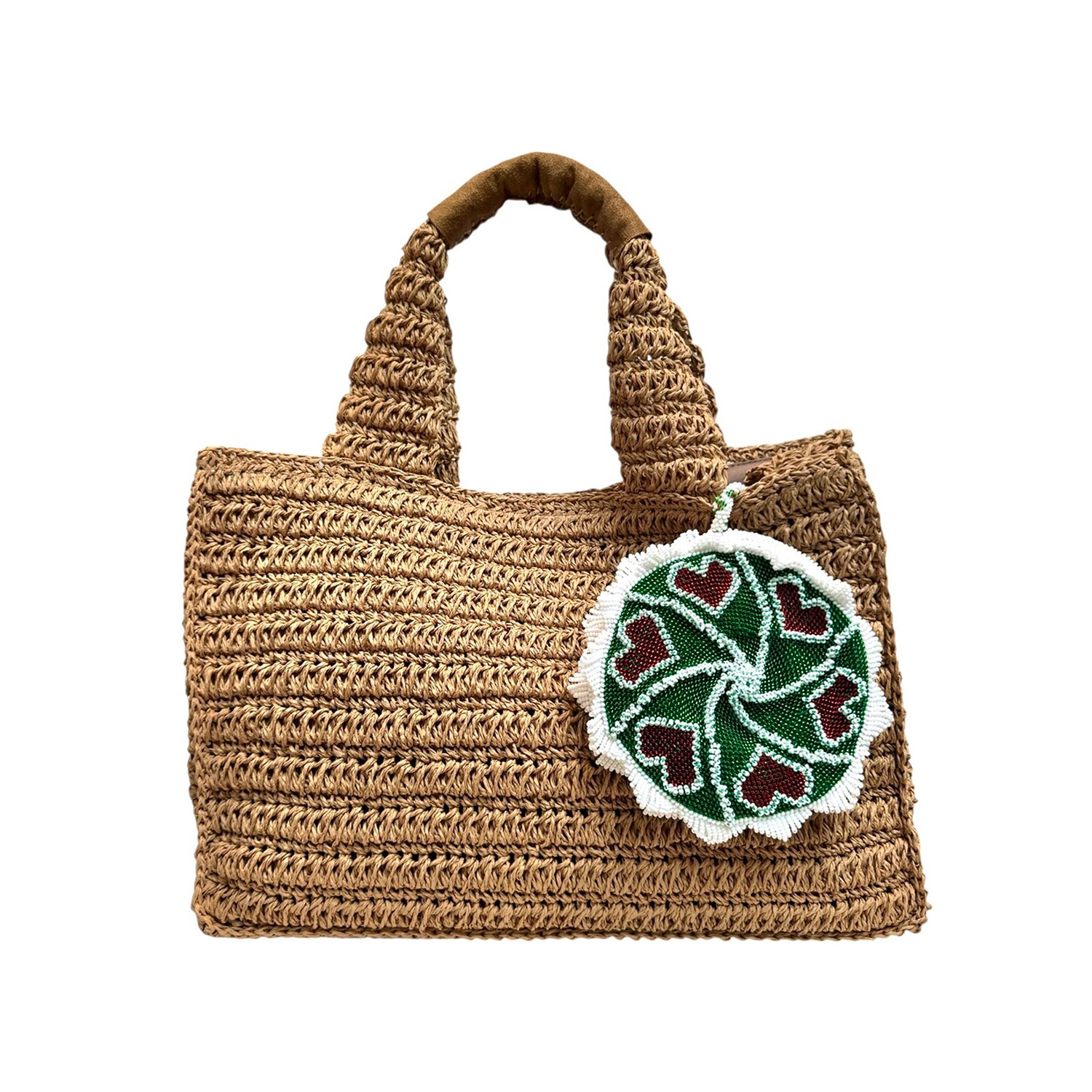 Handcrafted Straw bag with Suede Handles