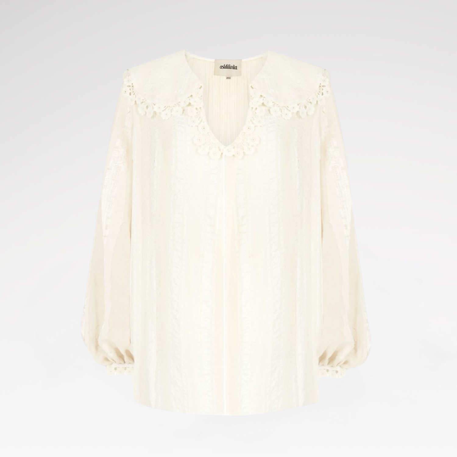 Long Sleeve Artisanal Shirt with Hand-Crocheted Details